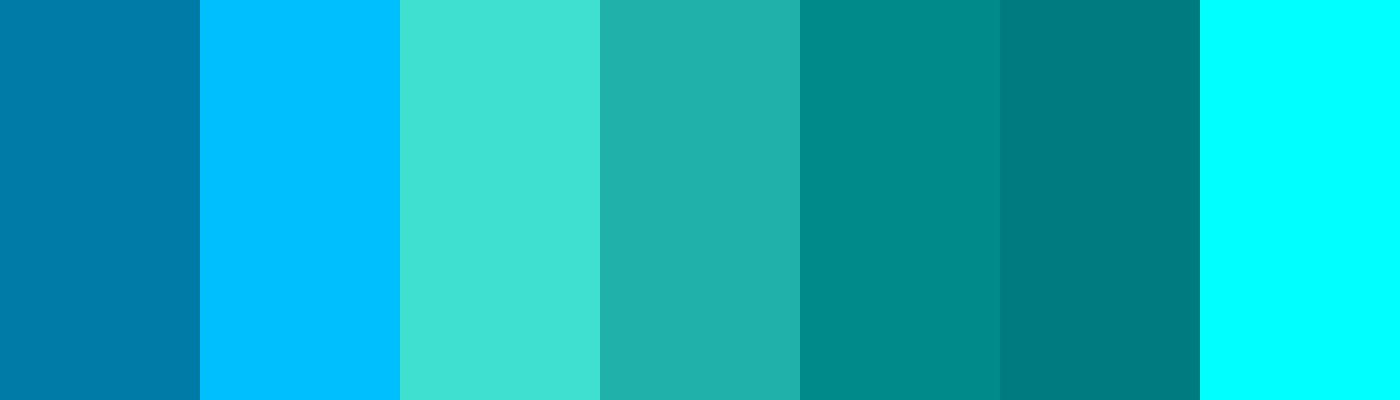Voici une palette de couleurs allant de bleu hélio de zinc à bleu-vert, offrant une transition fraîche et dynamique entre ces teintes aquatiques.