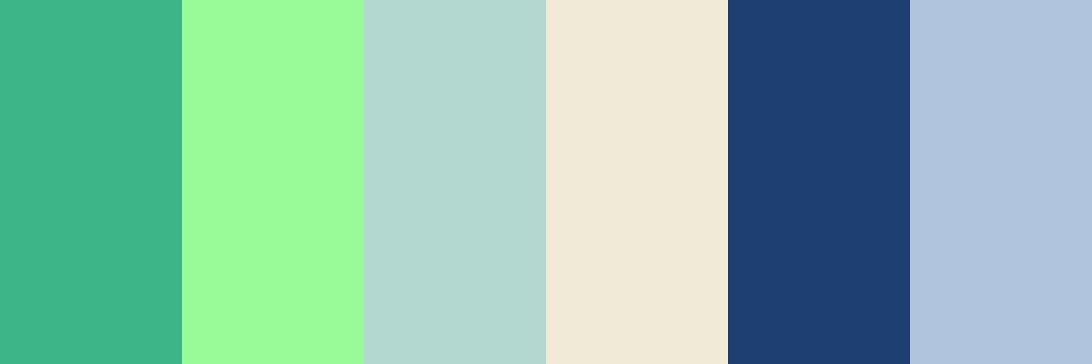 Voici une palette de couleurs allant de menthe poivrée à meringue presque zafre, offrant une transition douce et lumineuse entre ces teintes rafraîchissantes et légères.