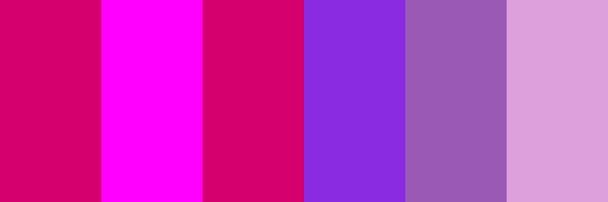 Voici une palette de couleurs allant de fuchsia cadmium à violet presque rose lumineux, offrant une transition vibrante et joyeuse entre ces teintes éclatantes et délicates.