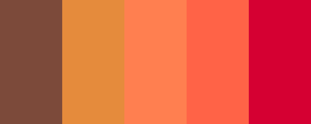 Voici une palette de couleurs allant de ci-gît réfractaire à fraise, offrant une transition chaleureuse et vibrante entre ces teintes terreuses et fruitées.