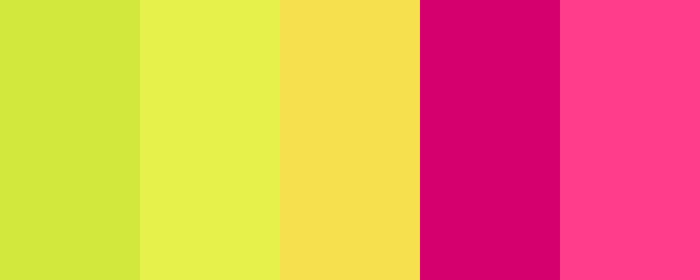 Voici une palette de couleurs inspirée du dégradé de chartreuse cadmium presque jaune à rose féroce, qui présente une transition vibrante du jaune éclatant au rose audacieux.