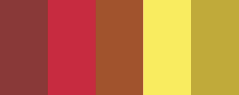 Here’s a color palette inspired by the phrase “De rouge sédiment à excrément jaunâtre cadmium,” which translates to “From sediment red to cadmium yellowish excrement.” This palette features earthy red tones transitioning to muted yellow hues.