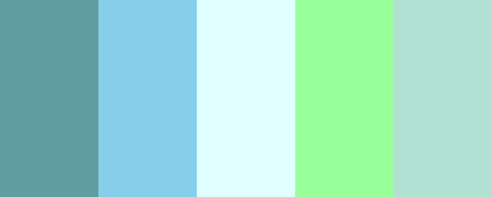This palette captures a serene transition from the soft, tranquil tones of cadet blue to the vibrant, refreshing shades of nearly green cadmium mint, creating a fresh and uplifting atmosphere.