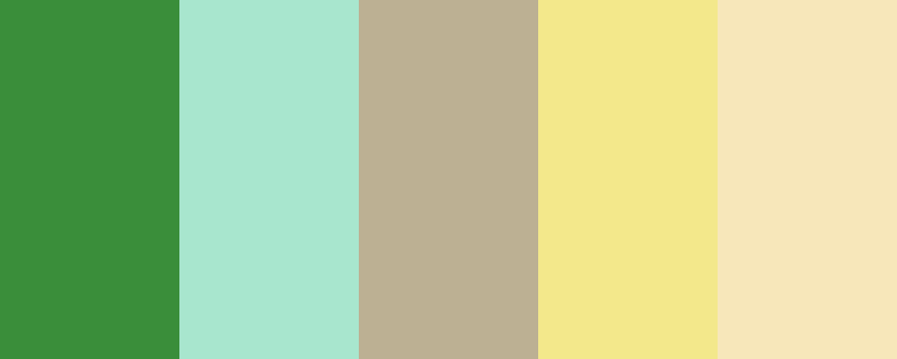 This palette flows from the rich and vibrant Wisches green to the soft, creamy tones of fresh butter, evoking a fresh and natural aesthetic with a balance of greens and yellows.