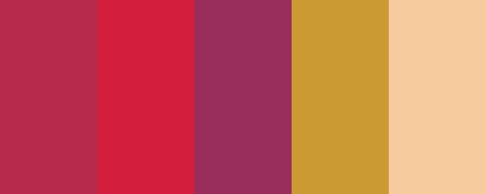 This palette transitions from the deep, vibrant tones of jazz berry alizarin to the warm, rich hues of quinquina jam, blending bold berry colors with the sweetness of golden apricot for a flavorful and inviting visual experience.