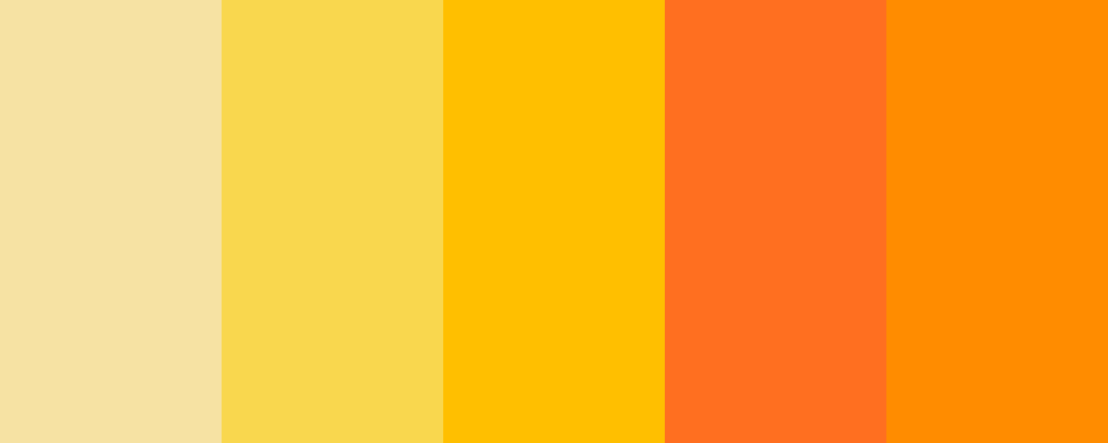 This palette transitions from a warm, cozy yellow to the vibrant and energetic tones of soda orange, combining sunny yellows and lively oranges for a cheerful and inviting aesthetic.
