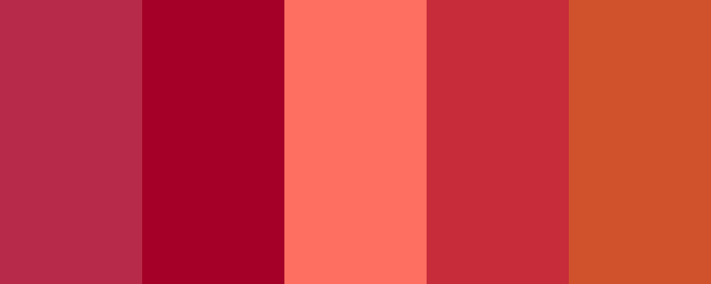 This palette transitions from the deep and intense tones of alizarin zoo crass to the vibrant and warm shades of persian red-orange, creating a dynamic blend of reds and oranges that evoke energy and warmth.