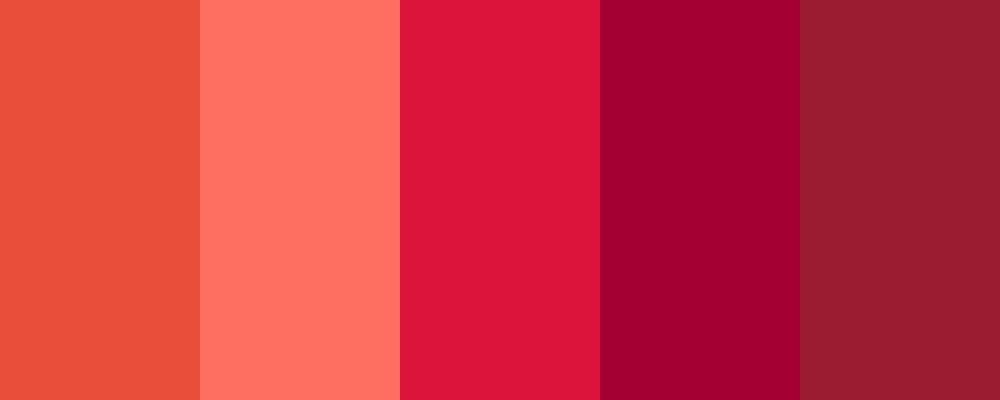 This palette transitions from the lively and warm tones of alizarin shrimp through vibrant coral and crimson shades to the rich and deep hues of quadrichrome red, creating an expressive and dynamic color scheme.