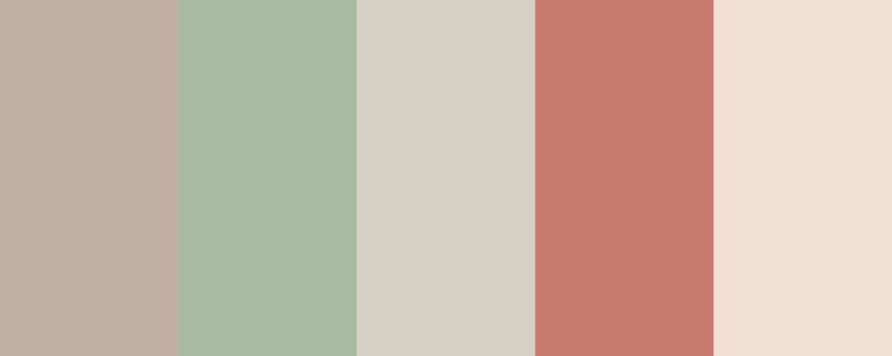 The “Soft Earth Tones” palette features a blend of gentle, muted colors that evoke a warm and inviting atmosphere. The main color is Dusty Rose, which is complemented by Sage Green and Warm Beige, creating a harmonious balance. Muted Terracotta adds a touch of warmth, while Soft Cream brightens the overall palette.