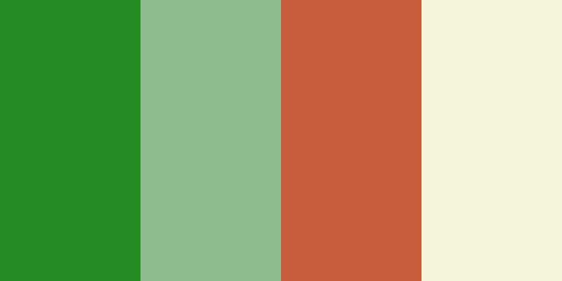 Palette Description: This palette, named “Enchanted Forest,” features the rich and earthy tones of Forest Green and Moss Green, reminiscent of lush foliage. The warm Rusty Orange adds a vibrant contrast, while Creamy Beige provides a soft, neutral backdrop. Together, these colors create a harmonious and inviting aesthetic that is perfect for nature-inspired designs or any project that seeks to evoke a sense of tranquility and warmth.