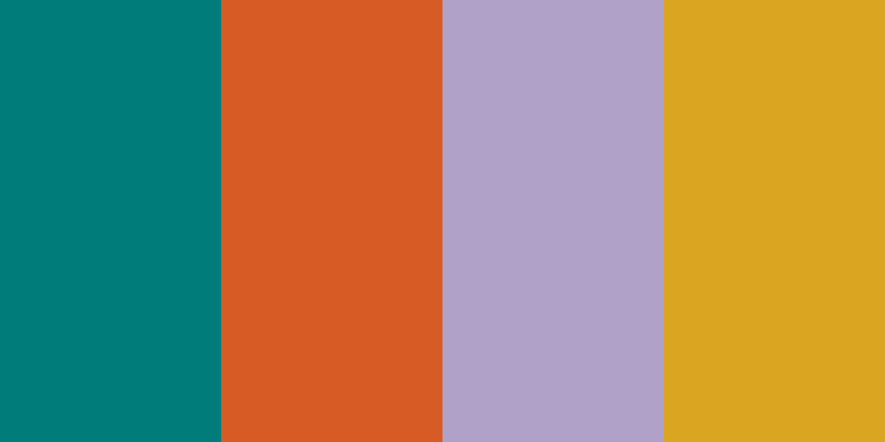 Palette Description: This palette, named “Mystic Mirage,” combines the rich and enigmatic tones of Deep Teal and Burnt Sienna for a striking contrast. Muted Lavender adds a soft and unusual touch, while Goldenrod Yellow infuses warmth and unexpected brightness into the palette. Together, these colors create a unique and adventurous aesthetic that is perfect for designs that aim to stand out and intrigue.