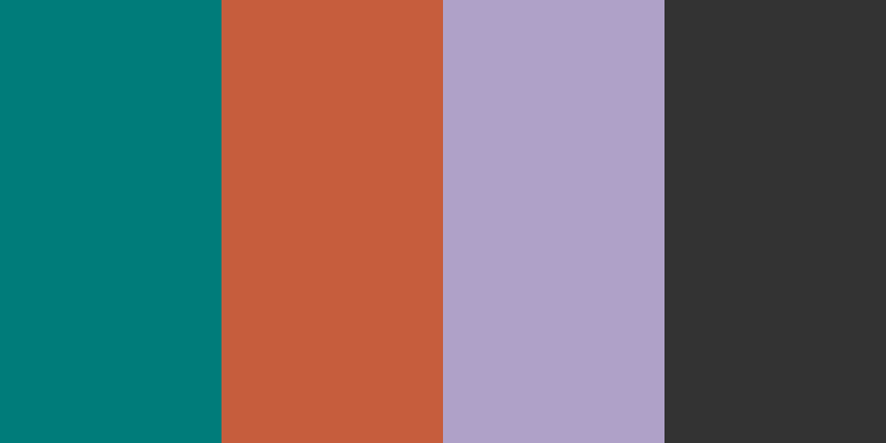 Palette Description: This palette, named “Eclectic Elegance,” combines the refreshing tones of Teal Blue with the warm and earthy tones of Burnt Orange for a vibrant contrast. Dusty Lavender adds a soft yet unusual touch, while Charcoal Gray grounds the palette with a sophisticated depth. Together, these colors create an unexpected but harmonious combination that is perfect for designs that aim to stand out while maintaining an elegant appeal.