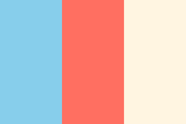 Palette Description: This palette, named “Gentle Breeze,” features the refreshing tone of Sky Blue, which brings a sense of openness and tranquility. Soft Coral adds a warm and cheerful touch, while Creamy White provides a light and airy contrast. Together, these colors create a pleasant and uplifting combination that is perfect for various design applications.