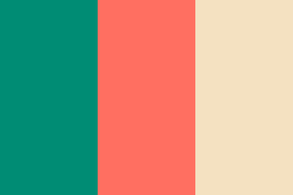 This palette combines the calming vibe of teal green with the warmth of soft coral and the neutrality of light sand, creating a balanced and inviting aesthetic.
