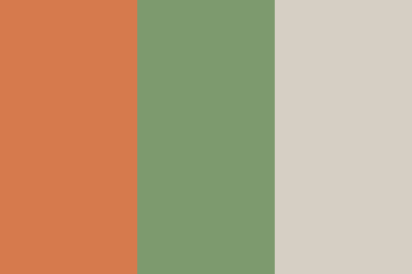 Palette Description: This palette, named “Earthy Tranquility,” features the warm and inviting shade of Terracotta, which evokes a sense of groundedness. Olive Green adds a natural and calming element, while Soft Taupe provides a gentle and neutral backdrop. Together, these colors create a harmonious and pleasant combination that is ideal for designs aiming to convey warmth and serenity.