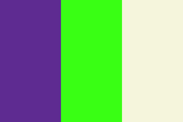 Palette Description: This palette, named “Cosmic Rhythm,” features the rich and mysterious hue of Deep Purple, which adds a sense of depth and intrigue. Neon Green introduces a vibrant and energetic pop that contrasts beautifully with the dark tone, while Soft Cream provides a gentle and neutral balance that lightens the overall palette. Together, these colors create a striking and dynamic combination that is perfect for artistic designs aiming to convey excitement and creativity.