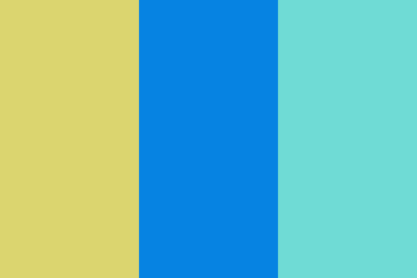 This palette conveys a sense of freshness and tranquility, perfectly balancing the warm olive yellow and the vibrant blue with a cool, soothing teal. Would you like to explore more palettes or specific color combinations?