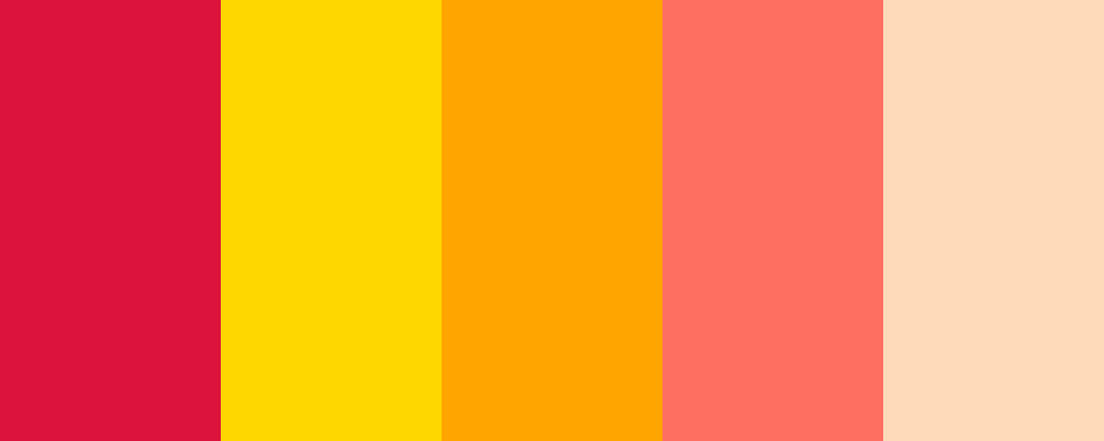 This palette combines bold reds and warm yellows with softer peach tones, creating a lively and inviting atmosphere.