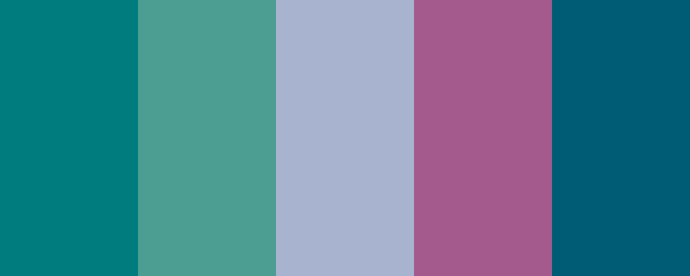 Here is the updated color palette with peacock blue swapped for a reddish purple:
