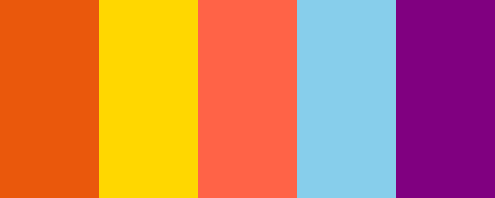 This palette captures the essence of a vibrant sunset with warm oranges and yellows contrasted by cool blues and deep purples.