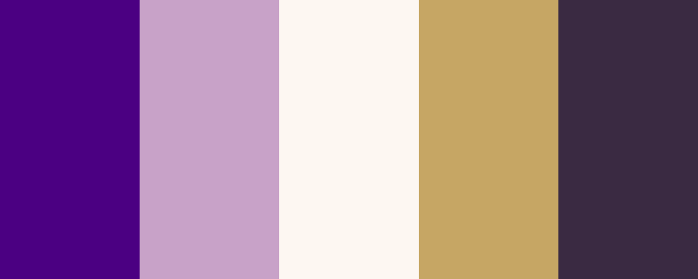 This palette, named “Regal Elegance,” combines rich and soft tones, creating a harmonious blend that exudes sophistication. The deep royal purple serves as a strong foundation, while the soft lilac mist provides a gentle contrast. The creamy pearl adds brightness, complemented by the antique gold accent for a touch of luxury, all grounded by the deep charcoal plum.