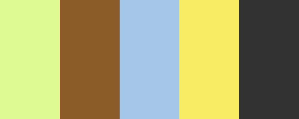 The “Fresh Green Brand Palette” features a soft green as the primary color, evoking feelings of nature and sustainability. Complementary earthy brown and bright yellow add warmth and energy, while sky blue introduces a refreshing contrast. Charcoal gray provides a strong base, grounding the palette and enhancing readability.