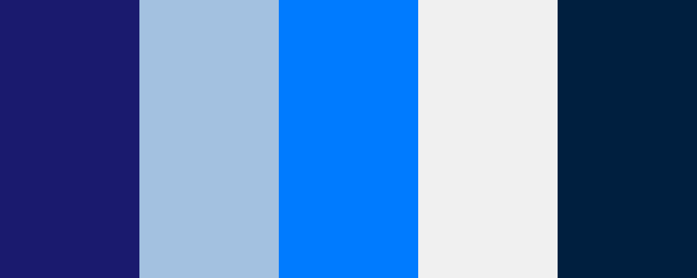 This palette combines a rich dark blue background with a soothing light blue for buttons, complemented by an accent blue for highlights, a soft gray for text or backgrounds, and a midnight blue for depth.