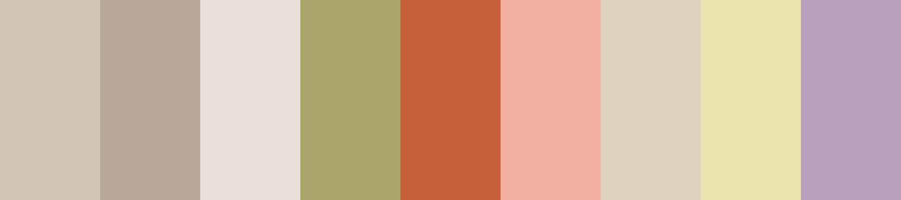 In this refined palette, the dark terracotta adds a deeper, richer tone that will beautifully contrast against the muted olive green and warm blush pink. The warm blush pink is now more inviting, providing a cozy accent. The addition of light sand introduces a soft and neutral option, while pale lemon yellow adds a cheerful brightness without being overpowering. The dusty lavender offers a subtle hint of color that can enhance the overall feel of the space.