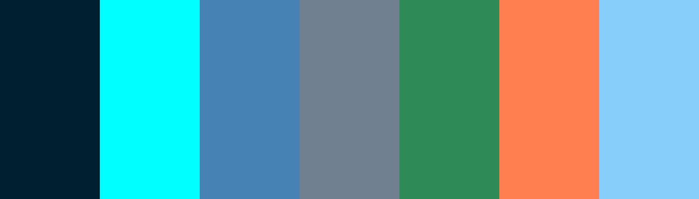 The updated “Deep Ocean Blues” palette now features a vibrant Cyan that replaces Teal, adding a refreshing touch. Additionally, Coral and Light Sky Blue have been introduced for a pop of color that contrasts beautifully with the deeper hues. This expanded palette retains the calming oceanic feel while introducing lively elements that can enhance your design.
