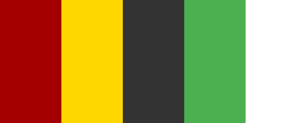 This palette features deep red to signify danger, caution yellow for alerts, dark gray for text and backgrounds, health green to indicate safety or recovery, and white for clarity and contrast.