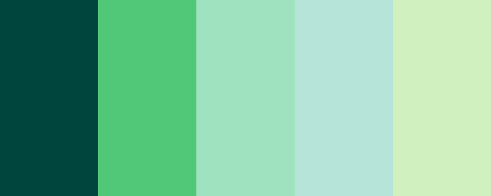 This palette, named “Emerald Oasis,” features a harmonious blend of greens that evoke a serene and refreshing atmosphere, transitioning from deep teal to lighter mint shades.