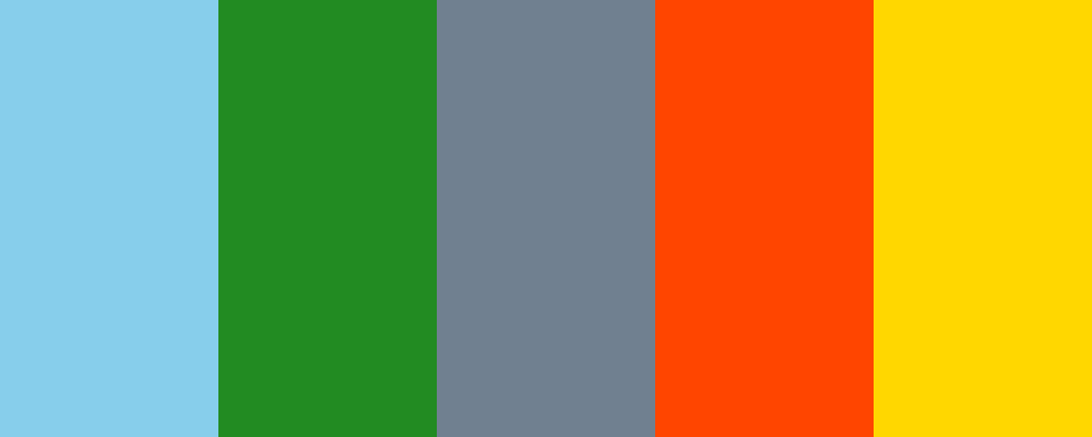 This palette combines colors that evoke a sense of nature and tranquility while also incorporating a vibrant touch with Sunset Orange and Golden Yellow. Would you like to explore specific themes or applications for this palette?
