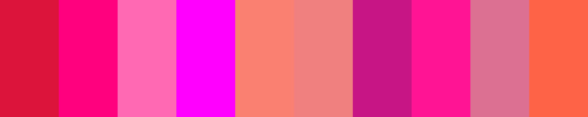 This palette showcases a vibrant range of reds and pinks, perfect for designs that need a bold and passionate touch. Would you like to explore variations or specific combinations using these colors?
