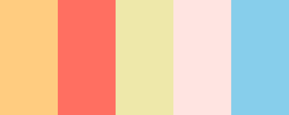 This palette is inspired by warm sunset colors, featuring soft peach, coral, and light golden hues complemented by cool sky blue for balance.