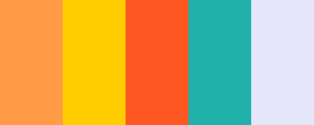 This palette features a mix of warm oranges and yellows, with a refreshing touch of green and a soft lavender to create a lively yet balanced composition.