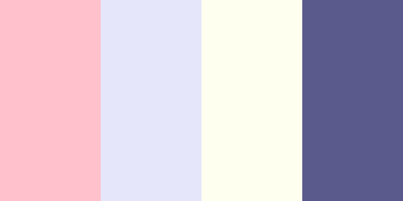 This palette combines soft and gentle hues, featuring a romantic blush pink complemented by a serene lavender, grounded by a warm ivory and a subtle soft navy, creating a harmonious and elegant aesthetic.