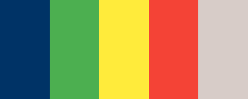 Опис палітри: Ця палітра включає в себе глибокий синій, що символізує глибину думок і почуттів, зелене листя, яке відображає природу та життя, сонячний жовтий, що приносить радість і тепло, червоний мак, який нагадує про українські поля та їхню красу, і теплий бежевий, що додає м’якості та затишку.