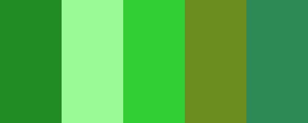 This palette captures the various shades of green found in nature, from the deep hues of forest foliage to the lighter tones of mint and seafoam, creating a refreshing and calming gradient reminiscent of lush landscapes.