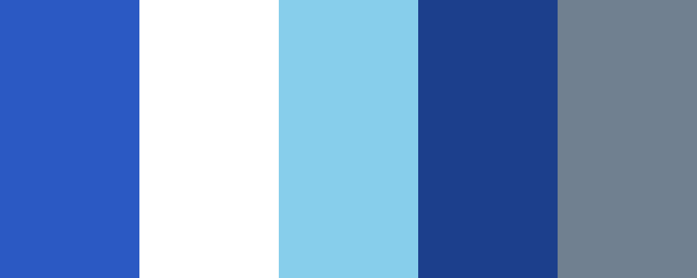 Based on your base color of blue ( #2b59c3 ) and white, I’ve created a complementary color palette that can represent your brand effectively. Here’s the color palette: