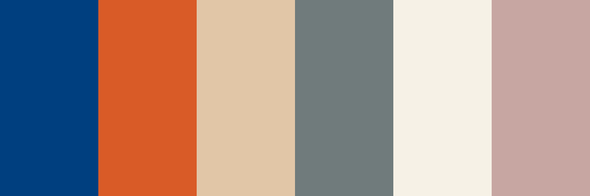 This palette combines the deep blue of your brand with warm earthy tones and neutrals, creating an industrial yet inviting atmosphere that can suit a variety of design styles.