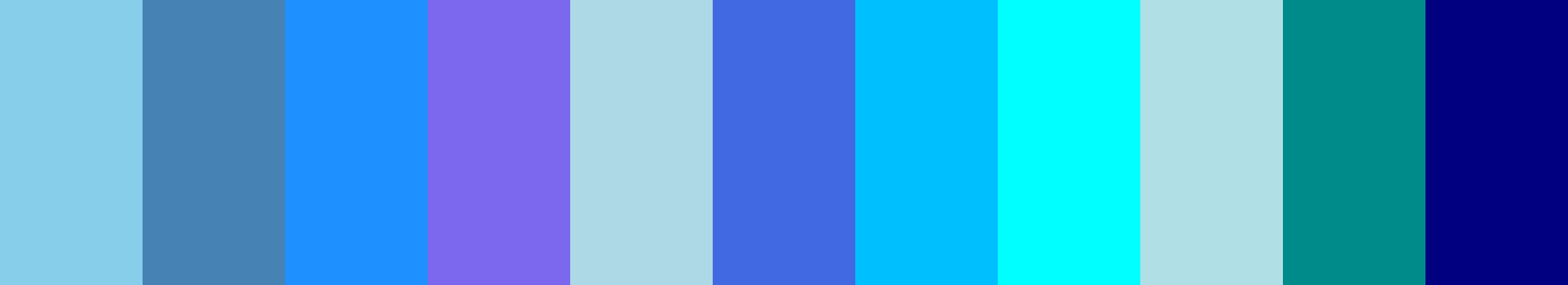Here is an 11-color palette featuring various shades of blue, perfect for a blue-themed aesthetic: