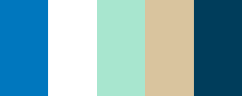 This palette combines deep ocean blues with light, airy whites and soft greens, complemented by sandy beige and deep navy to evoke the tranquility of the sea.