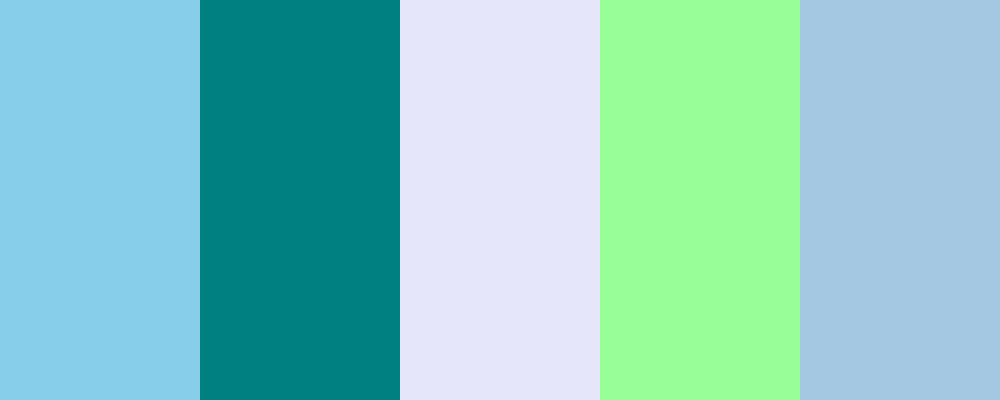 This palette features soft blue and green shades, complemented by muted lavender and teal tones, creating a calm and serene environment.