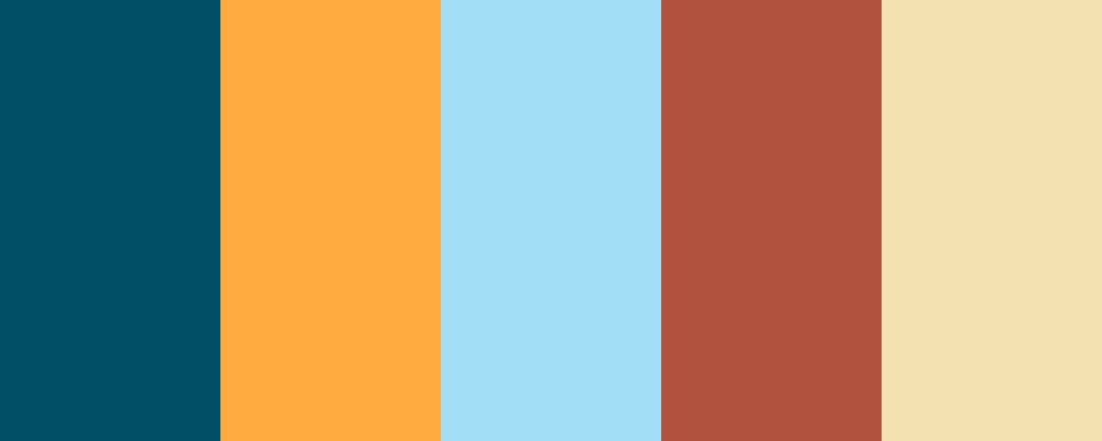 Опис палітри: ця палітра передає спокій та красу морського пейзажу на світанку. Глибокий синій відтінок символізує море, теплий помаранчевий колір відображає сонячний світло, а світло-блакитний колір передає чистоту неба. Коричневий відтінок представляє човен, а світлий пісочний колір нагадує про пляж.