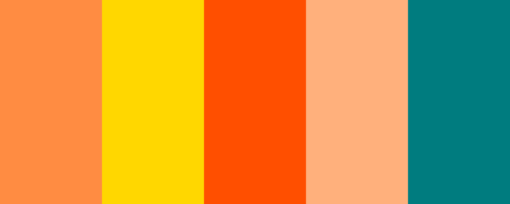The “Vibrant Sunset” palette captures the essence of a stunning sunset with its warm orange tones complemented by cheerful yellows and soft peach. The deep teal adds a contrasting touch, making this palette perfect for lively designs or summer themes.