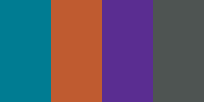 This palette combines deep, dark shades with vibrant accents that create a dynamic and intriguing visual experience. The contrasting colors enhance the overall interest while still working harmoniously together.