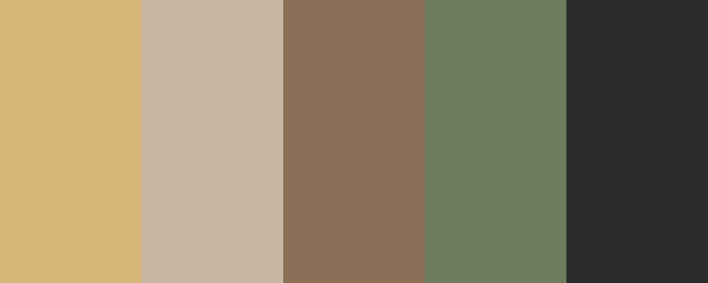 This palette, “Earthy Tones,” features a collection of warm and muted shades that evoke a natural, organic feel. The combination of honey, oat, and brown sugar colors brings warmth, while the dusty leaf green adds a touch of nature. The charcoal soft black provides a grounding contrast.