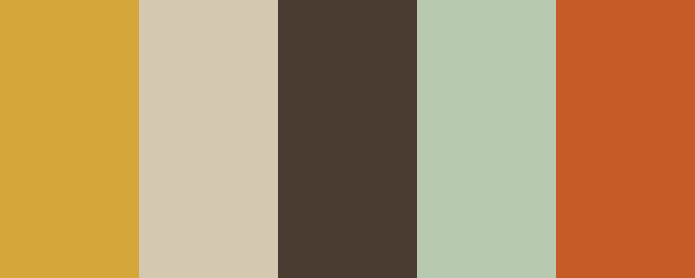 This palette now features a warm terracotta, which adds depth and vibrancy, harmonizing with the muted sunflower yellow, soft beige, dusty brown, and pale sage green.