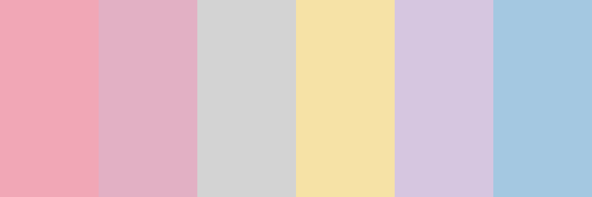 This pastel elegance palette features a soft pastel pink and burgundy that add warmth and richness, a gentle soft grey for a calming effect, a cheerful butter yellow that brightens the palette, a light pastel purple for a whimsical touch, and a baby blue that brings a sense of serenity.