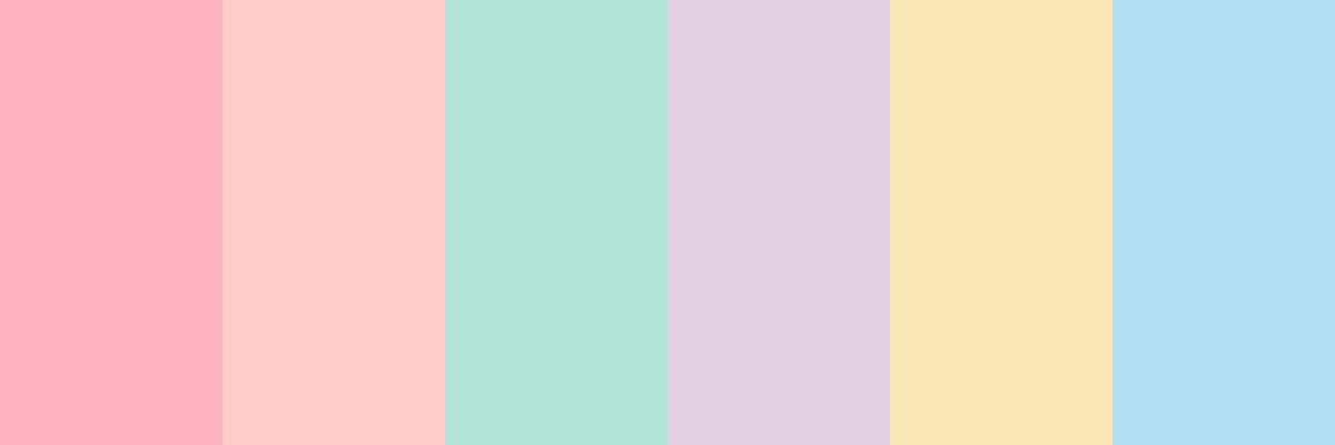 This Light Pastel Dream palette includes a soft light pink and gentle coral blush for warmth, a light mint green for freshness, a pale lavender for a calming touch, a soft butter yellow for brightness, and a light sky blue that adds a serene element.